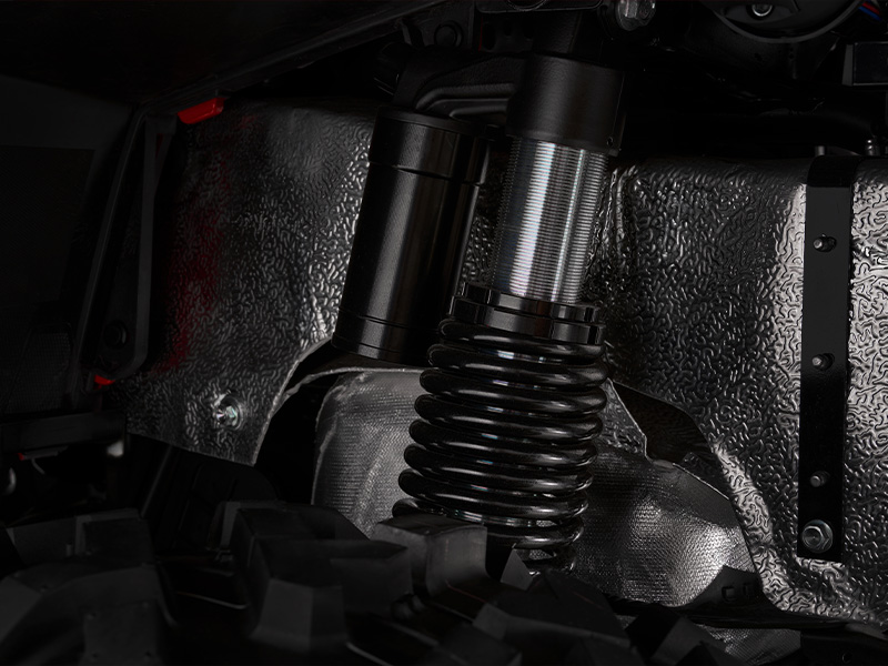 Zawieszenie – podwójne wahacze, regulowane amortyzatory gazowe i wytrzymała rama ze stali wysokiej jakości.